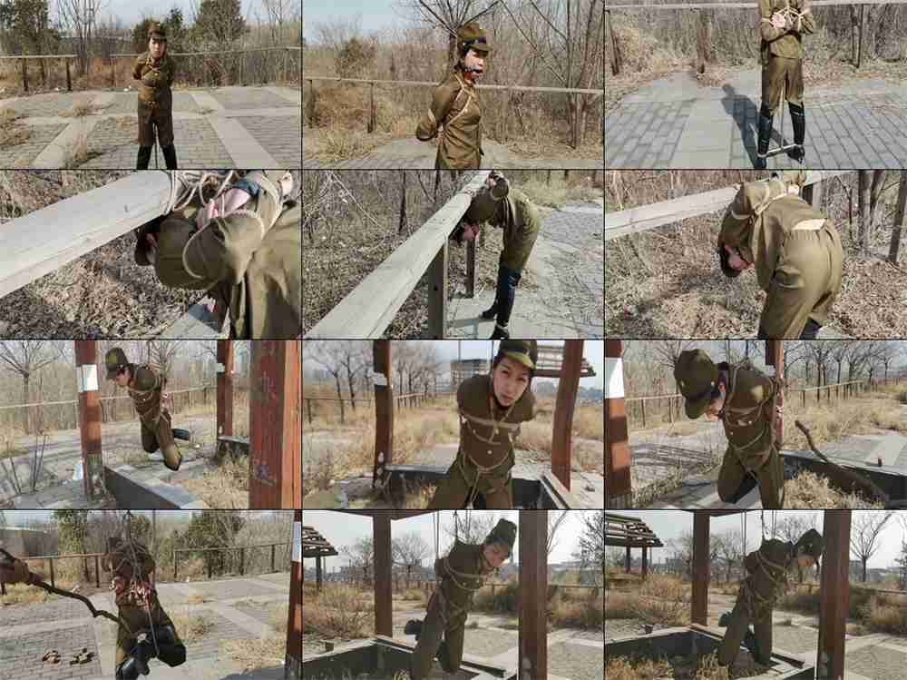 把云儿押山上,紧缚够难受啦,又把T形架给她固定上,强迫行走,固定木栏上折磨,吊起来木棍敲打,在荒无人烟山顶上只能忍受折磨……